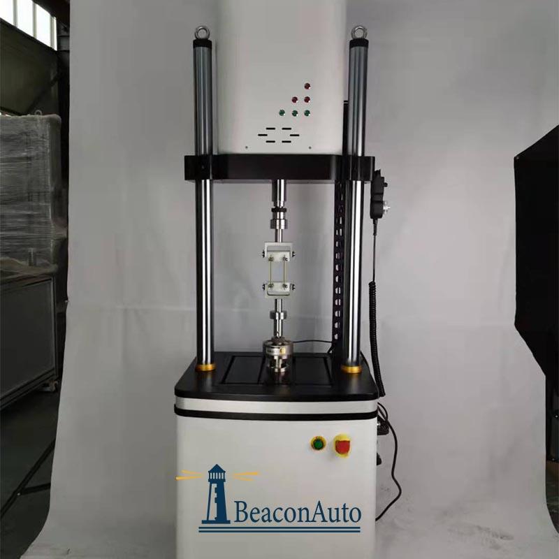 鐵路扣件組裝疲勞試驗機 扣件組裝疲勞性能試驗 疲勞試驗前,組裝扣件時不墊入軌下調高墊板,安裝A型彈條,使彈條中部前端下顎與軌距擋板剛好接觸后,再將螺母加擰四分之一圈。 1. 原 理 在所示的加載位置和方向對鋼軌軌頭施加循環荷載。通過試驗過程中扣件組裝扣壓力、鋼軌縱向阻力、扣件組裝靜剛度和鋼軌位置的變化,以及扣件部件疲勞后的狀態確定扣件的組裝疲勞性能。 1. 試驗設備 1.1 鋼軌 一段長度約0.5m或1m的短鋼軌(I型為50kg/m)(II、III型為60kg/m)鋼軌軌腰處截去后總高度h(如圖6),軌底不應修整。鋼軌應無剝離,表面無浮銹,軌底沒有由于重復試驗被磨光。 1.1 加載設備 單個承軌面試驗時,能在3Hz~5Hz頻率下達到100kN的設備。當要求同時對2個或4個承軌面加載時,其加載能力應相應增大。 1.2 加載裝置 能按所示的加載位置,方向對鋼軌軌頭施加循環荷載。該裝置允許鋼軌在荷載作用下自由轉動,平行鋼軌軸線的寬度為100mm±10mm,其與軌頭接觸部分的半徑大于軌頭接觸表面的圓弧半徑,保證所有荷載條件下,其與鋼軌保持線接觸。 1.3 樞軸 加載設備、加載裝置或加力架的自由樞軸,從樞軸到鋼軌的距離不應小于0.4m。 鐵路扣件組裝疲勞試驗機
