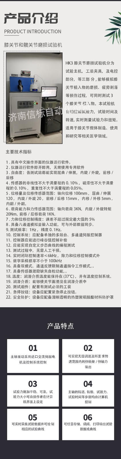 | 濟(jì)南信標(biāo)自動化設(shè)備有限公司主要生產(chǎn):動靜態(tài)萬能疲勞試驗(yàn)機(jī),接骨板彎曲試驗(yàn)機(jī),縫合線拉伸疲勞試驗(yàn)機(jī),髖膝關(guān)節(jié)磨損試驗(yàn)機(jī),電子萬能試驗(yàn)機(jī)、液壓萬能試驗(yàn)機(jī)、巖石三軸、四軸,電液拉力試驗(yàn)機(jī),材料試驗(yàn)機(jī),高低溫蠕變,高低頻疲勞,拉伸、扭轉(zhuǎn)、杯突等二十多個系列兩千多個的品種。 |