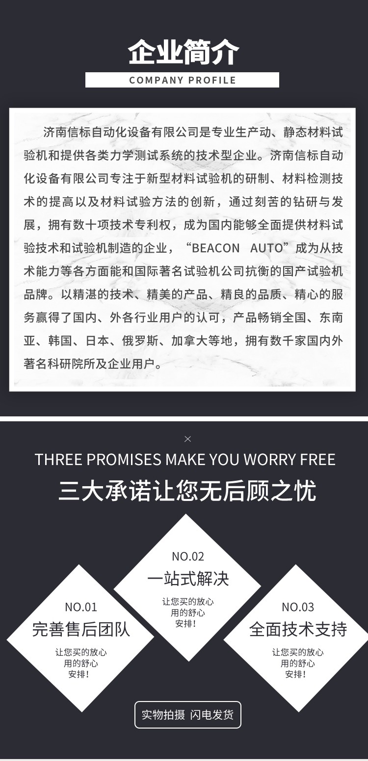 濟(jì)南信標(biāo)自動(dòng)化設(shè)備有限公司主要生產(chǎn):動(dòng)靜態(tài)萬(wàn)能疲勞試驗(yàn)機(jī),接骨板彎曲試驗(yàn)機(jī),縫合線(xiàn)拉伸疲勞試驗(yàn)機(jī),髖膝關(guān)節(jié)磨損試驗(yàn)機(jī),電子萬(wàn)能試驗(yàn)機(jī)、液壓萬(wàn)能試驗(yàn)機(jī)、巖石三軸、四軸,電液拉力試驗(yàn)機(jī),材料試驗(yàn)機(jī),高低溫蠕變,高低頻疲勞,拉伸、扭轉(zhuǎn)、杯突等二十多個(gè)系列兩千多個(gè)的品種。