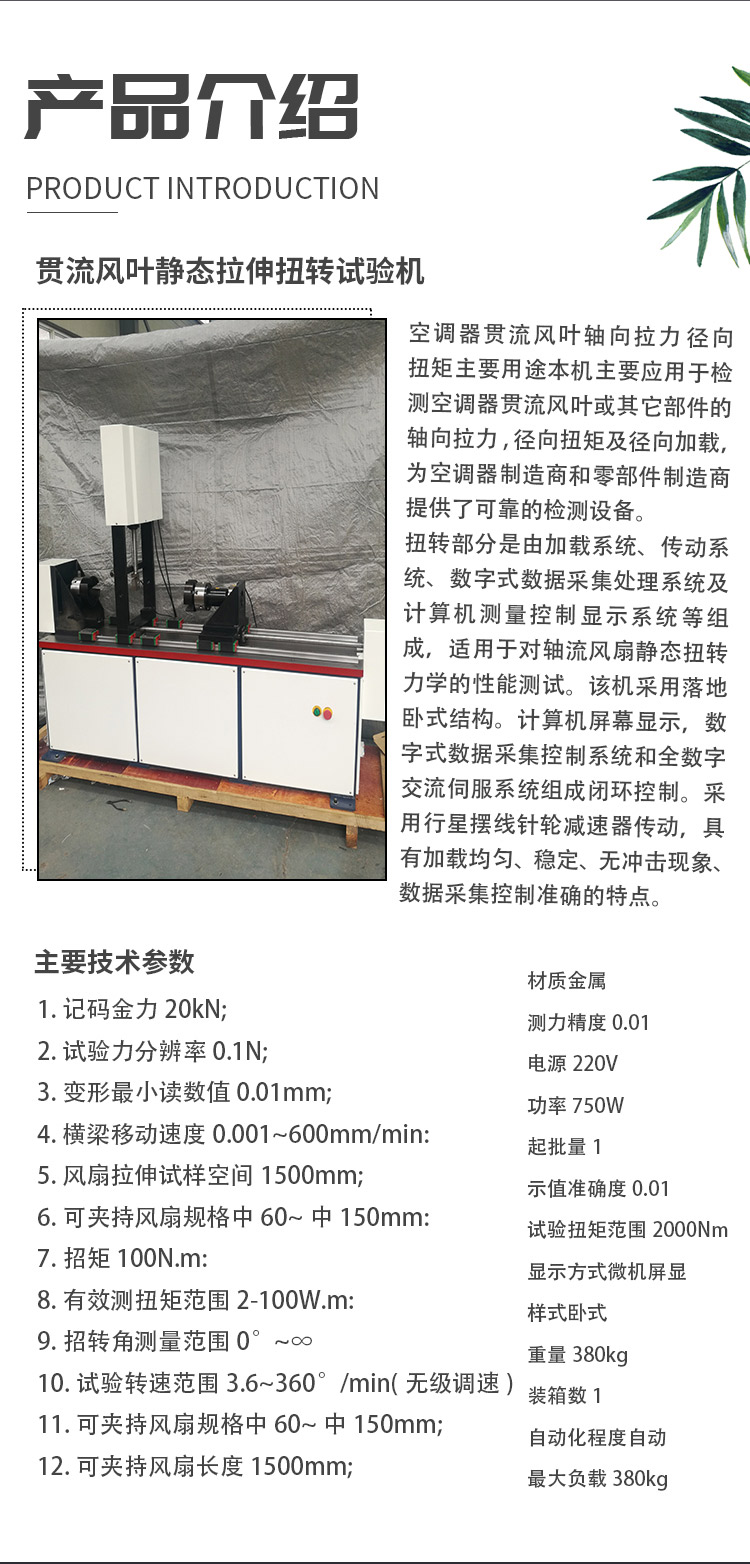 當前位置:首頁 > 產品中心 > 貫流風葉靜態拉伸扭轉試驗機 空調器貫流風葉軸向拉力 徑向扭矩
