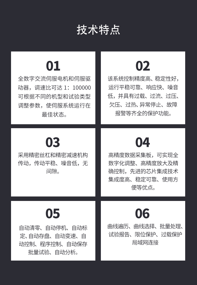 測量參數: 1. 最大試驗力: 10/20/30/50kN 2. 試驗力測量范圍: 0.4%--100%。 3. 試驗力示值精度:優于示值±1% 4. 試驗力分辨力:1/500000 5. 橫梁位移測量精度:分辨率高于0.0025mm 6. 變形測量精度: ±0.5% 7. 試驗速度范圍:0.0002—500mm/min,無級調速 8. 速度控制精度:±1%(0.0002~50mm/min); ±0.5%(50~3500mm/min) 9. 恒力、恒變形、恒位移控制范圍: 0.2%-100%FS 10.恒力、恒變形、恒位移控制精度: 設定值<10%FS時,設定值的±1.0%以內 設定值≥10%FS時,設定值的±0.1%以內 11. 變形速率控制精度: 速率<0.05%FS時為±2.0%設定值內 速率≥0.05%FS時為±0.5%設定值內 12. 試驗空間: A.拉伸空間:1000mm B.壓縮空間:1100mm C.寬度:450mm 13.下工作臺:450*250 14. 壓盤尺寸:φ100 mm 15. 整機電源:單相,220V±10%,50Hz,功率:750 W 16. 工作環境:室溫—35℃,相對濕度不超過80% 17. 主機尺寸: 870×730×1750mm 18. 重量:400 kg 三、產品配置: 1、主機 一套 2、松下A7全數字伺服電機及伺服驅動器; 一套 3、高精度負荷傳感器; 5kn/1kn/500N/200/ 各一支 4、Hiwin精密滾珠絲杠; 2支 5、光電編碼器(2500線,內置); 1支 6、夾具:滿足海綿/汽車座椅所需工裝 1套(有多種) 7、三閉環測量系統一套,采用力,位移,應變等多種控制方式,試驗過程中可實時顯示力-位移,力-時間,應力-應變等多種試驗曲線,并可自動得出最大負荷,拉伸強度,斷裂伸長率等多種結果參數。 8、HP品牌計算機,21寸液晶顯示器; 9、打印機:HPA4彩色噴墨打印機; 10、專用試驗軟件:可執行GB,ISO,JIS、DIN,ASTM等多種試驗標準,全開放式,功能強大,方便操作,免費提供升級軟件,并可根據用戶需求自行編輯試驗軟件。