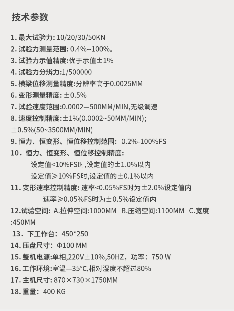 血管導管拉伸強度試驗機的技術參數