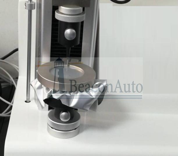 膠塞穿刺力測試試驗機 穿刺強度定義: 將直徑為100mm的試片安裝在樣膜固定夾環上,然后用直徑為1.0mm,球形頂端半徑為0.5mm的鋼針,以(50±5)mm/min的速度去頂刺,讀取鋼針穿透試片的大負荷,測試片數5個以上,取其平均值。 塑料薄膜的抗穿刺能可更全面反映薄膜的抗穿刺性能。 塑料薄膜或復合薄膜的耐穿刺力是檢測包裝材料的重要指標之一,尤其是對于蒸熟肉制品包裝,例如禽類肉制品,其中骨頭對包裝材料有較強的穿刺能力,因此,測試包材的穿刺強度是包材廠家及食品生產企業必檢項目。其實驗方法在GB/T 10004-2008(包裝用塑料復合膜、袋干法復合、擠出復合)有明確規定。 膠塞穿刺力測試試驗機產品簡介: 1、膠塞穿刺力測試試驗機主要用于各種金屬、非金屬及復合材料的拉伸、壓縮、彎曲、剪切、剝離、撕裂、穿刺、頂破等力學性能指標的測試。系統采用微機閉環或開環控制,具有寬廣準確的加載速度和測力范圍,對載荷、位移的測量和控制有較高的精度和靈敏度。 2、本設備可針對土工膜、塑料薄膜等配穿刺輔具,來完成起穿刺強度的測試;配相應的拉伸輔具也可測薄膜的拉伸性能。根據客戶需求選定。